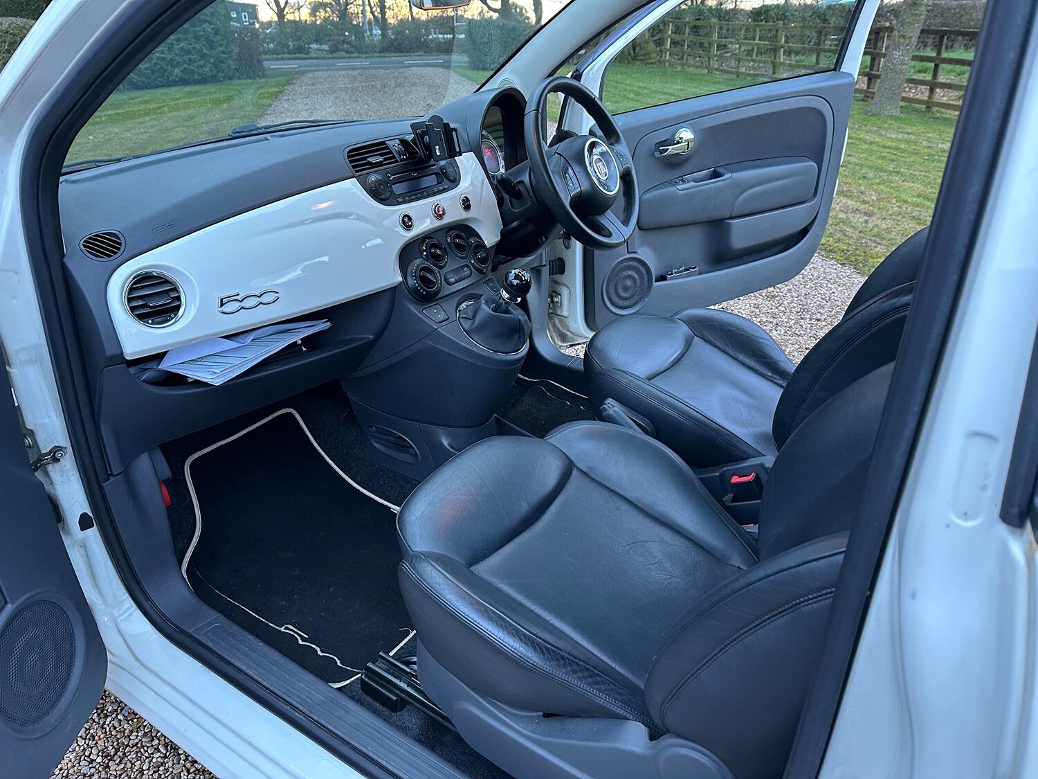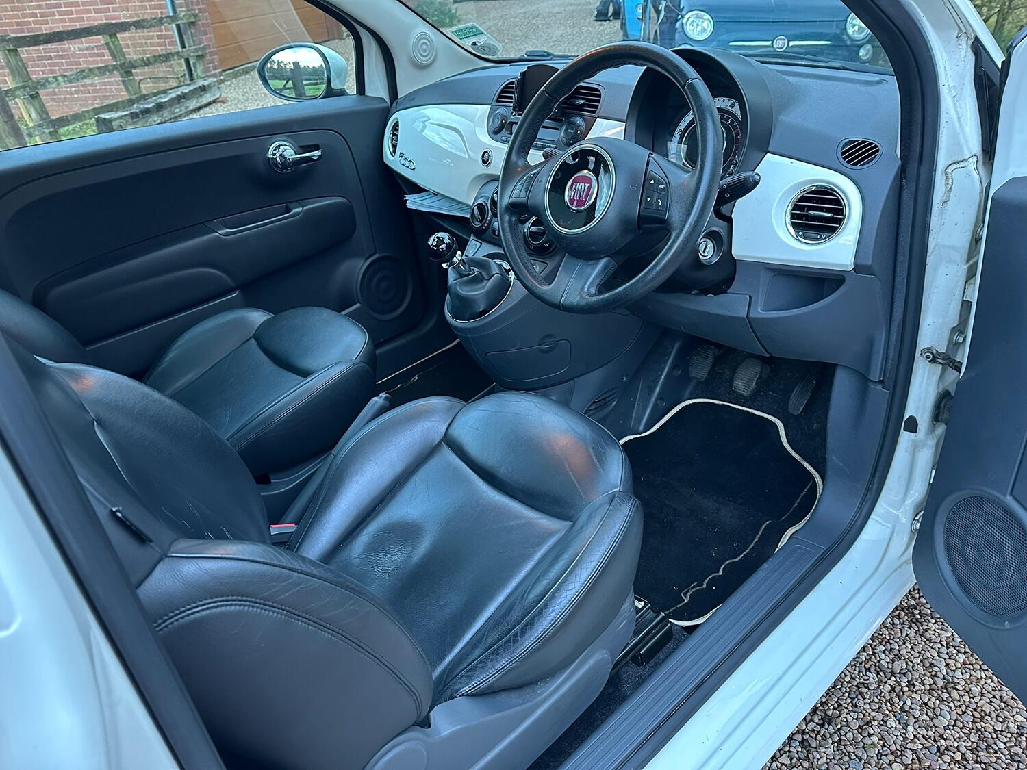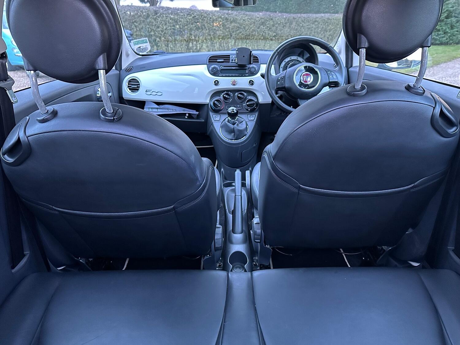 Heart of England Motor Company are delighted to present this HPI clear Fiat 500 Lounge finished in Bossa Nova White gloss paint with full Black leather. The car comes with a panoramic glass roof, air conditioning, Blue & Me bluetooth with USB port, dual-drive power assisted ‘city mode’ steering, audio system with CD player that reads MP3 CDs, radio receives AM/FM and RDS, bluetooth including phone connection, front seat map pockets, passenger under seat storage, 8 airbags, ISOFIX child safety seat preparation, remote control central door locking including boot release with two factory supplied keys, connections for USB and auxiliary audio devices, day time running lights, height adjustable steering wheel, height adjustable driver’s seat, passenger grab handle, split rear seat with height adjustable head restraints, illuminated mirror on passenger sun visor, 16 inch multi spoke alloy wheels, spare wheel with jack it, front electric windows with one-touch on both windows, Isofix preparation, electrically adjustable heated door mirrors, rear windscreen with intermittent wash wiper, steering wheel mounted remote audio controls, body coloured side rubbing strips with 500 “logo".